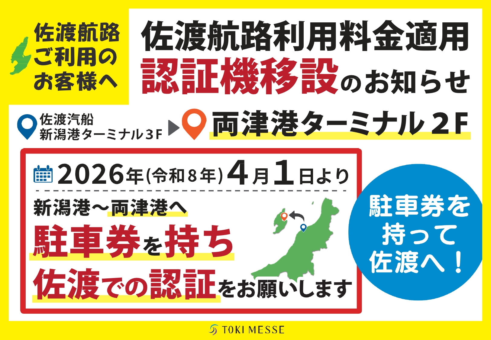 ★佐渡航路利用料金適用認証機 移動のご案内